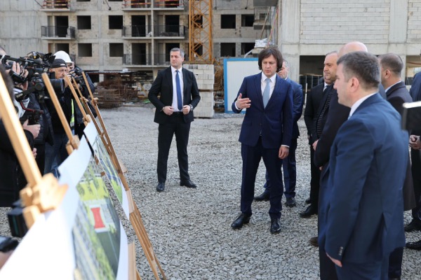 საქართველოს პრემიერ-მინისტრი ირაკლი კობახიძე, რეგიონული განვითარების მინისტრ კახა გულედანთან და აჭარის ავტონომიური რესპუბლიკის მთავრობის თავმჯდომარე სულხან თამაზაშვილთან ერთად, „ოცნების ქალაქის“ სამშე...