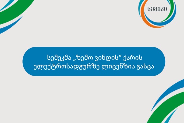 საქართველოს ენერგეტიკისა და წყალმომარაგების მარეგულირებელმა ეროვნულმა კომისიამ (სემეკ) შპს „ზემო ვინდ ის “ ქარის ელექტროსადგურზე ელექტროენერგიის წარმოების ლიცენზია გასცა. ქარის ელექტროსადგური მდებარეო...