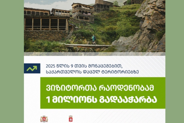 მიმდინარე წლის 9 თვის მონაცემებით, საქართველოს დაცულ ტერიტორიებს 1 055 095 ვიზიტორი ეწვია, რაც, გასული წლის ანალოგიური პერიოდის მაჩვენებელთან შედარებით, დაახლოებით 10%-ით არის გაზრდილი. ყველაზე მეტი ვ...